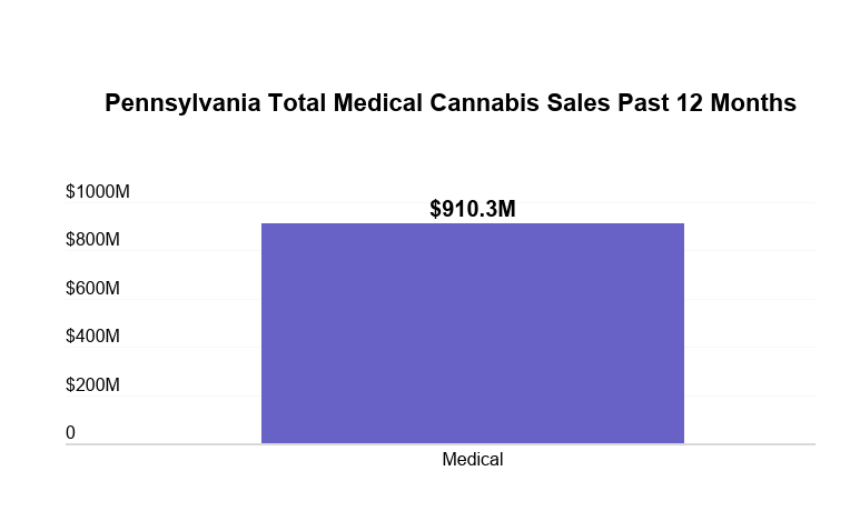 In the last 12 months, Pennsylvania medical cannabis sales totaled $910M.