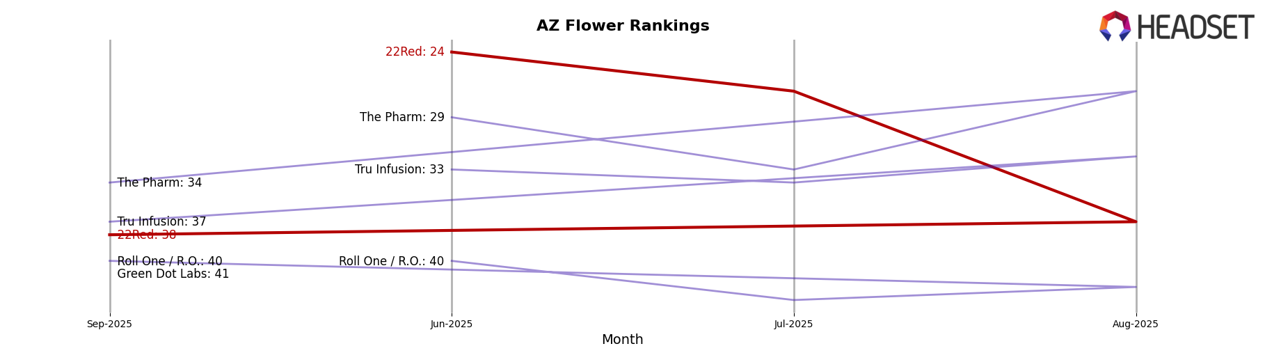 In the state of Arizona, 22Red has shown a mixed performance across different product categories. Notably, in the Flower category, the brand made a substantial leap from a ranking of 36th in September 2025 to 17th in October 2025, indicating a significant improvement in market presence and consumer demand. This upward trend in the Flower category contrasts with the Vapor Pens category, where 22Red did not rank in the top 30, suggesting potential challenges or competitive pressures in this segment. The Concentrates category also saw some fluctuation, with 22Red moving from 29th in September to 26th in October, a modest improvement that may signal a rebound in consumer interest.