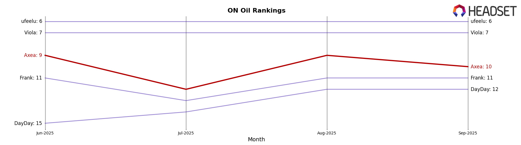In the Ontario oil category, Axea experienced a notable fluctuation in its market position from July to October 2025. Initially ranked 12th in July, Axea climbed to 9th in August, reflecting a strong sales performance. However, by October, Axea's rank dropped to 14th, indicating a decline in sales momentum. This shift allowed competitors such as DayDay to maintain a steady 12th position throughout the period, and LoFi Cannabis to surpass Axea by securing the 13th spot in October. Meanwhile, Twd. showed a consistent upward trend, moving from 19th in July to 15th in October, potentially challenging Axea's market share. These dynamics suggest that while Axea had a strong start, sustaining its competitive edge will require strategic adjustments to counteract the rising competition and regain its earlier market position.