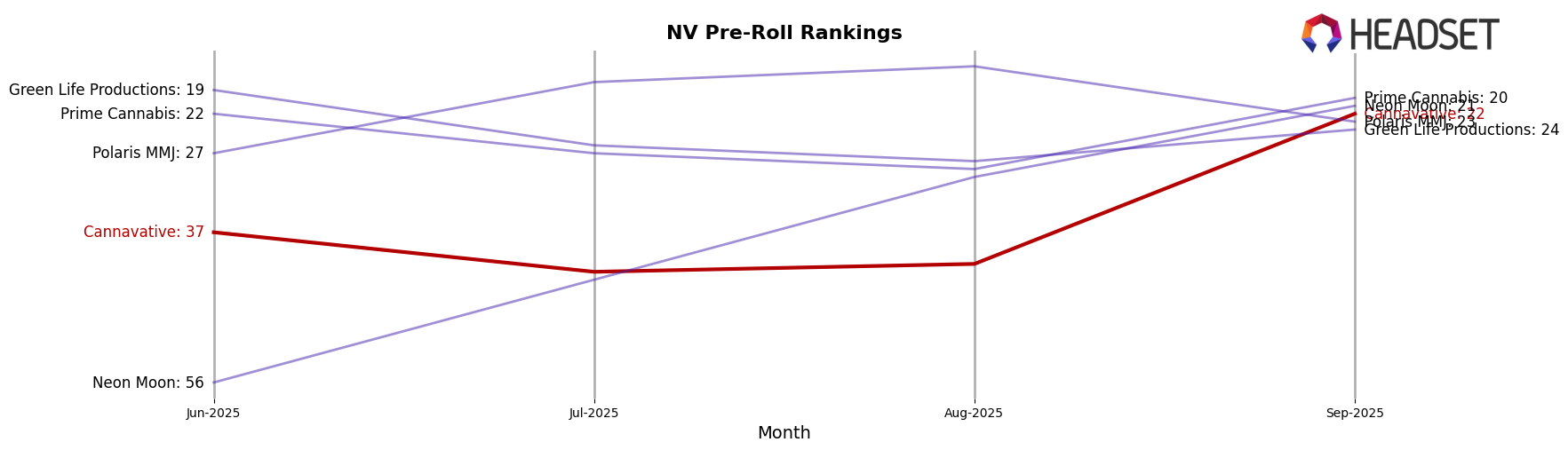 Cannavative has shown notable progress in the Nevada market, particularly in the Pre-Roll category. Over the past few months, the brand has climbed from a rank outside the top 30 in July and August to reach the 21st position by October. This upward trajectory is indicative of a significant increase in sales, with a jump from $35,284 in July to $80,302 by October. The consistent improvement in ranking suggests a growing consumer preference and possibly a strategic enhancement in product offerings or distribution effectiveness within this category.
