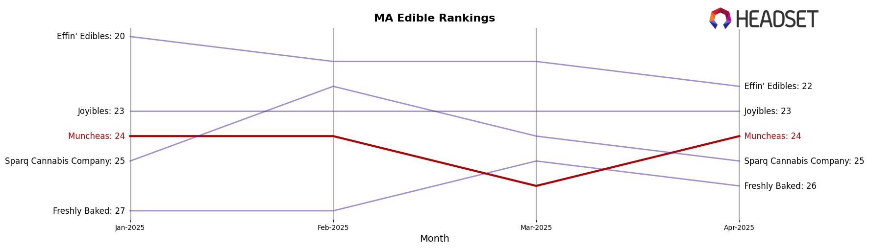 Muncheas has shown a consistent presence in the Massachusetts edible category over the last few months of 2025. Despite not breaking into the top 15, the brand has maintained a steady ranking, starting at 23rd in September and slightly improving to 20th in October. This upward trajectory is a positive sign, suggesting that their strategies in the Massachusetts market are resonating well with consumers. However, after reaching 20th place, Muncheas experienced a small dip to 21st in November, followed by another slight decrease to 22nd in December. This fluctuation indicates a competitive landscape where maintaining a higher rank requires continuous adaptation and innovation.